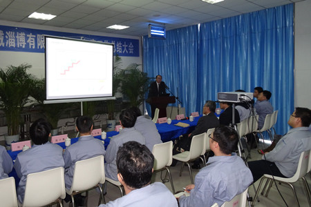 王正軍總經(jīng)理首先對(duì)2014年度工作做了總結(jié):2014年是一個(gè)豐收年,各項(xiàng)指標(biāo)創(chuàng)公司歷史新高。訂貨同比增長2%, 營業(yè)收入同比增長9.2%,應(yīng)收賬款大幅下降。更可喜的是臨界利潤率增長3.8個(gè)百分點(diǎn)。公司連續(xù)二年實(shí)現(xiàn)盈利,完成了荏原制作所的總體目標(biāo) 。